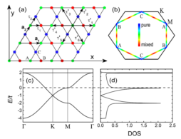 二、近年来,新型笼目超导体CsV3Sb5的发现引起了研究者的广泛关注和极大的研究热情。由于其特殊的晶格结构 [图(a)],具有二维笼目结构的材料能带中往往具有平带 [图2(c)]、范霍夫奇异点和类似于石墨烯的狄拉克型色散 [图2(d)],因而能够诱导产生一系列关联拓扑物态。特别是在范霍夫奇异点(van Hove singularities)掺杂附近,理论预测二维笼目体系可呈现出新奇的超导电性和丰富的电子有序态,还有可能获得拓扑非平庸的超导态。
