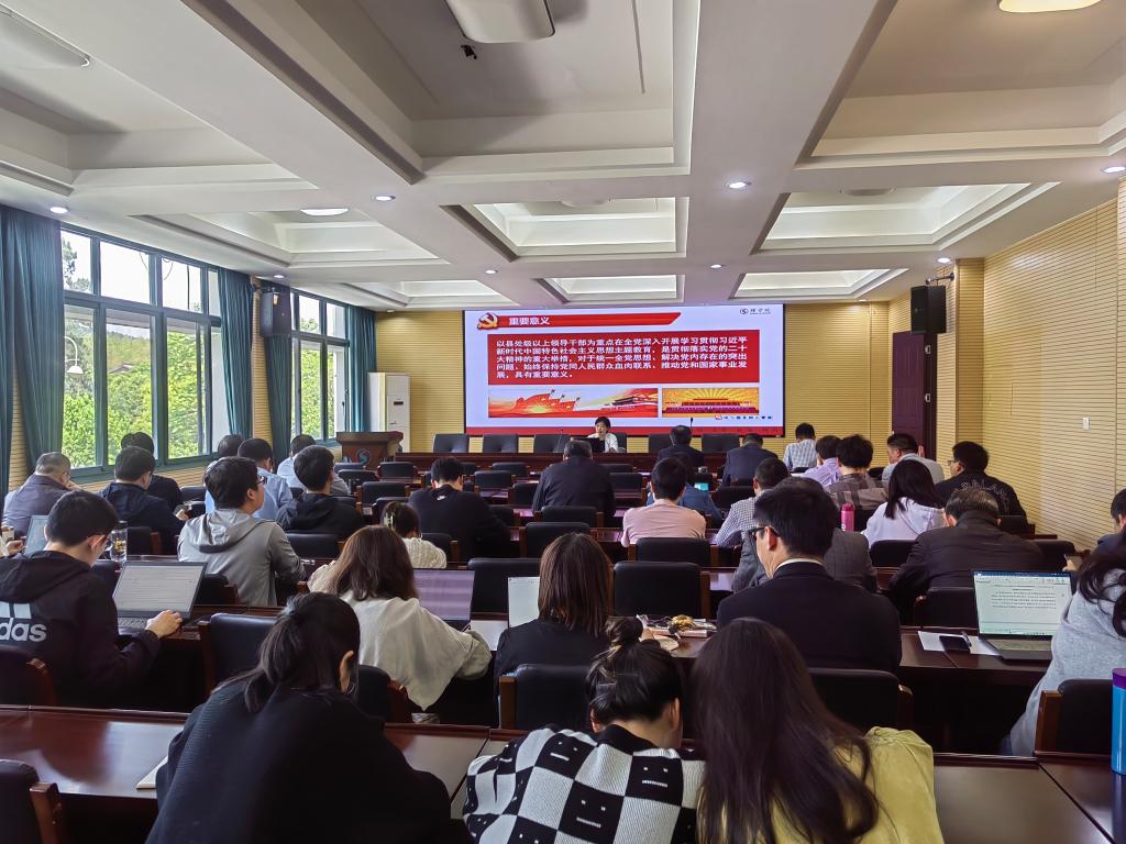 教职工政治理论学习会上,张掬婴带领全院教职工学习习近平总书记在中央政治局集体学习、主题教育工作会议上和广东考察时关于主题教育相关的一系列重要讲话精神。她指出,习近平总书记系列重要讲话内涵丰富,具有很强的政治性、思想性和指导性,为全党高质量开展主题教育提供科学指引和根本遵循。张掬婴就如何开展主题教育作详细说明和部署。