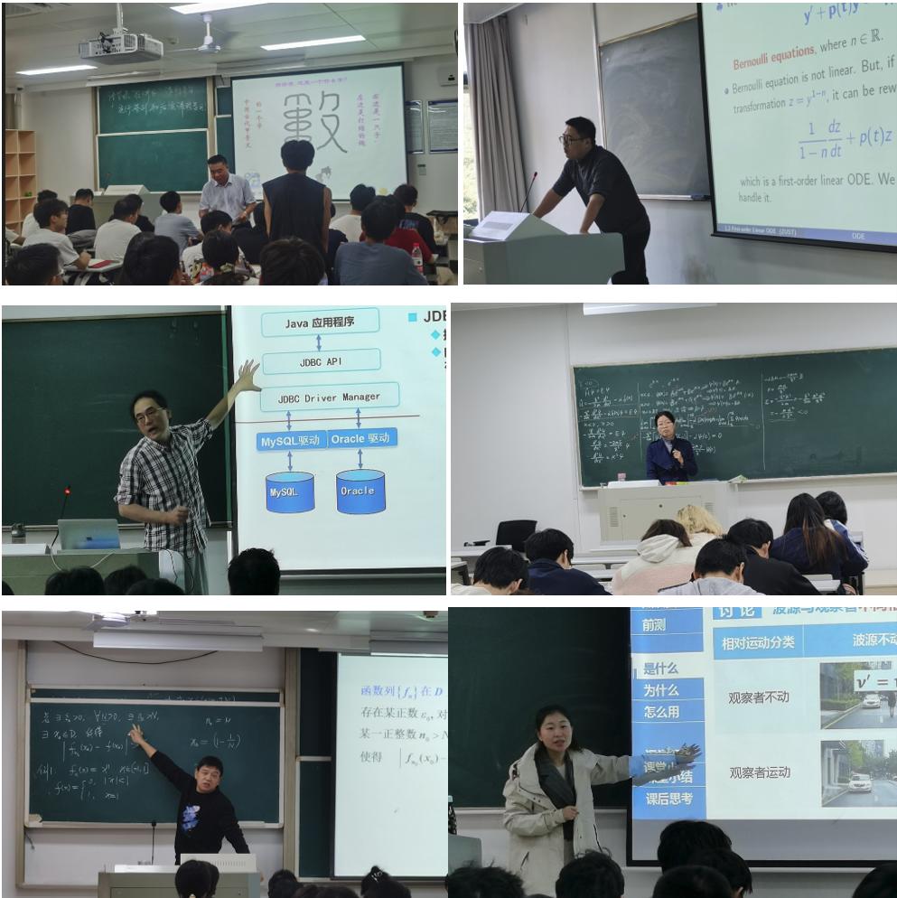从9月20日到11月20日,新教师们分别观摩了胡月老师的《概率论与数理统计A》(省一流课程)、陈建军老师的《常微分方程》(双语课程)、潘俊老师的《分布式数据库原理及应用》、郎晓丽老师的《量子力学》(双语课程)、雷建光老师的《数学分析3》(校一流课程)、沈艳婷老师的《大学物理B2》等6个开放课堂。每次听课活动后,我们年轻的博士们均和公开课老师交流、探讨,虚心请教,对自己所从事的教书育人职责有了深刻的理解和领悟,对教学技能有了长足的进步。
