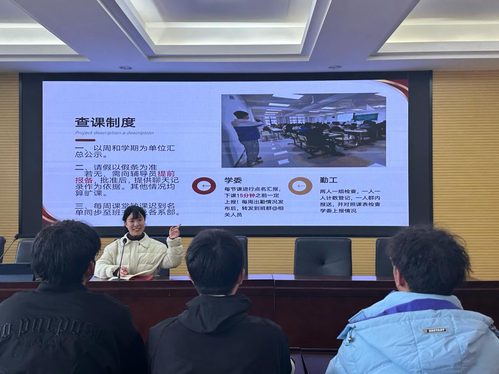 权学部负责人吴章深入解读新学期学风督察制度,并就学业预警学生的帮扶机制进行介绍,同时对寝室安全检查、校园安全问题等进行安全警示教育。