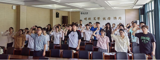 授课结束后,由黄奕筱领誓,全体毕业生党员一起重温入党誓词。