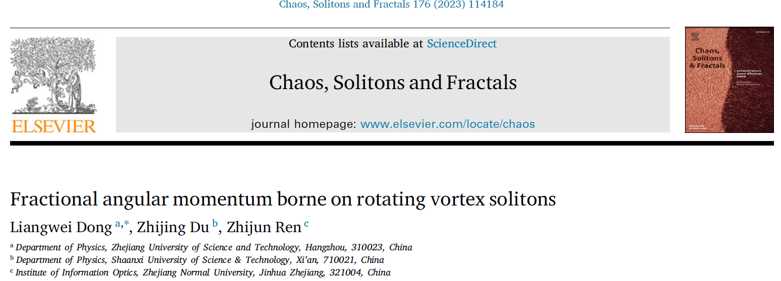 为第一单位发表在物理学、非线性科学重要学术期刊《Chaos Solitons & Fractals》、《Phys. Rev. A》、《Opt. Lett.》等上。相关内容多次在学术会议上展示,取得较大的学术影响。