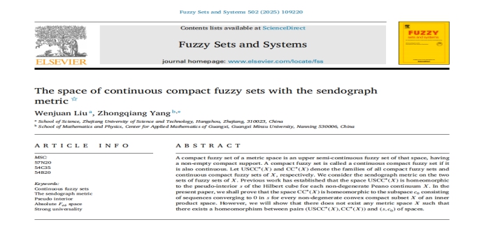 1.《The space of continuous compact fuzzy sets with the sendograph metric》;
