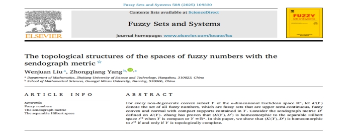 代数与模糊数学团队刘文娟博士与合作者在模糊数学国际权威期刊《Fuzzy Sets and Systems》(中科院一区top期刊)上连续发表3篇学术论文,系统深化了模糊度量空间理论的研究。研究成果以BBIN