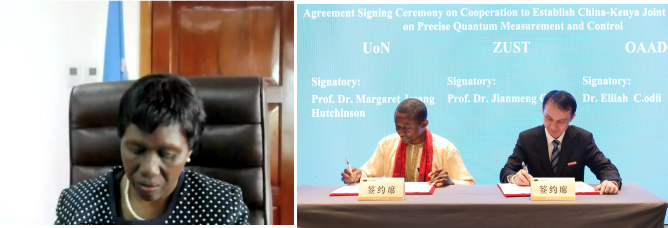 长玛格丽特·哈钦森教授在致辞中指出,2025年是“国际量子科学与技术年”,此次肯中双方与非洲全球学术博士组织开展精密量子测量与调控的合作研究恰逢其时、意义重大。她代表内罗毕大学承诺将全力支持此项合作,持续推进师生交流、联合研究和学术研讨等内容,共同应对量子世界提出的重大挑战,促进肯中两国科技和教育交流合作。