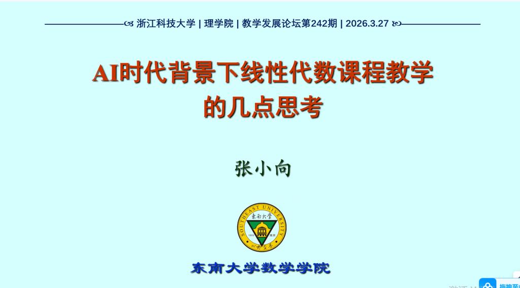 张小向教授应邀作了题为《AI时代背景下线性代数课程教学的几点思考》的教学论坛专题报告。报告由BBIN