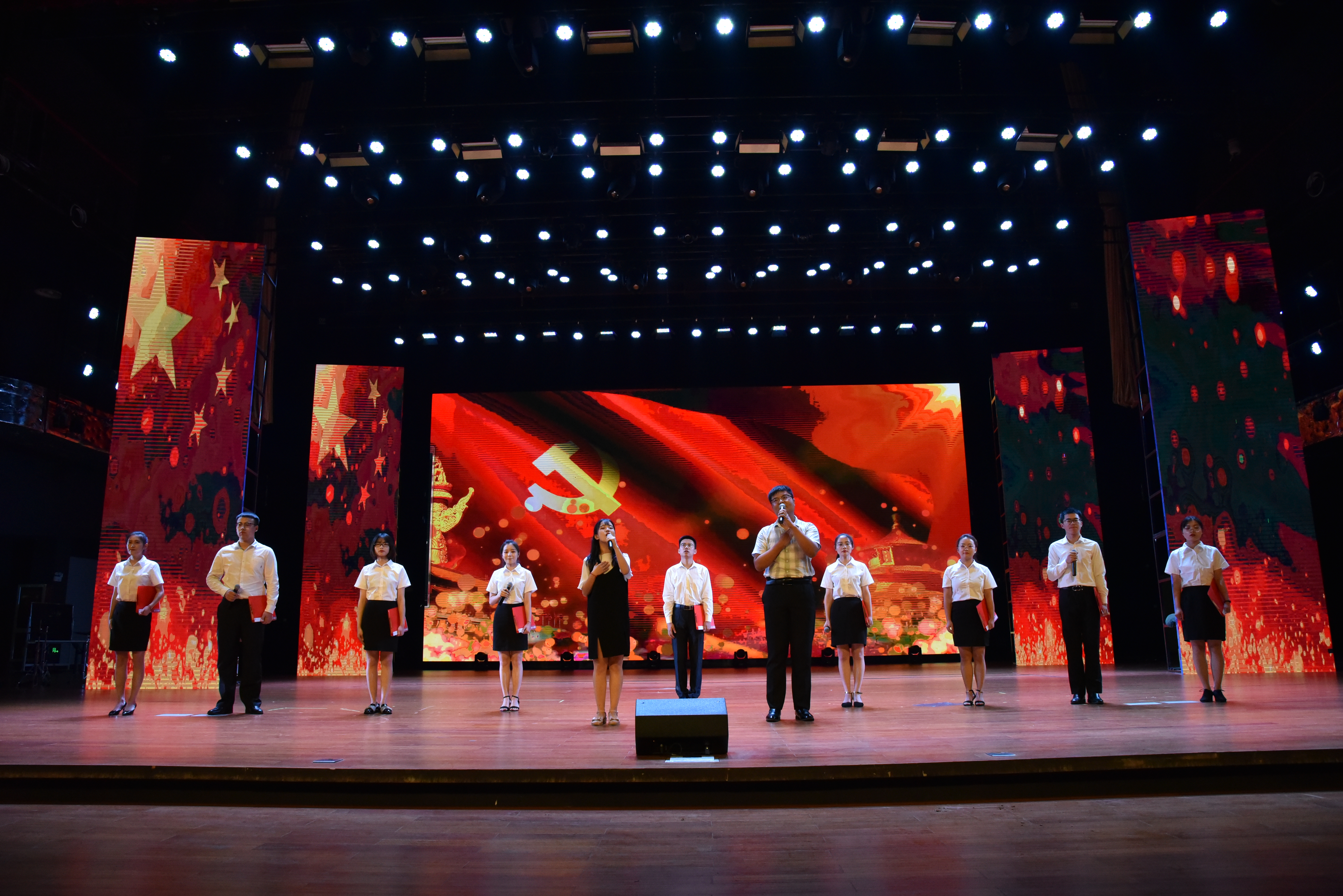 师生党员的诗朗诵《我们的新时代》阐释了国家强大带来的时代变化,师生联唱《我和我的祖国》唱出了最真爱国情。