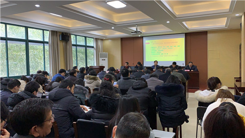 未来三个五年的发展目标;构建了“五院一体、开放强院”的发展战略体系;同时提出了“贡献导向、一院两制”,“卓越导向、减免考核”,“激励导向、各显神通”,“育人导向、指标量化”等制度创新的思路与方法探索。指明了以加强党建,深入推进全面从严治党;齐心努力、全力贡献冲刺“更名大学”;试点改革,全面启动“五院一体”工程;对标一流,建设好学科和专业平台;爱生强生,以生为本做好人才培养;共享发展,做好新一轮岗位聘任工作等2019年工作重点和努力方向。他勉励全体教职工鼓足干劲,同理同心,再创BBIN
