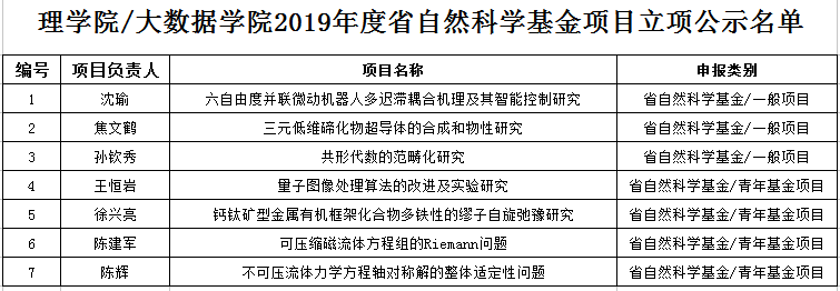 近日,浙江省科学技术厅、浙江省自然科学基金委员会发布“关于2019年度浙江省自然科学基金拟资助项目公示的通知”,BBIN 共有7个项目获浙江省自然科学基金项目立项。