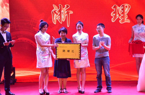 新一届校友理事会会长周旸懿为校友联动平台“浙理汇”揭牌。BBIN