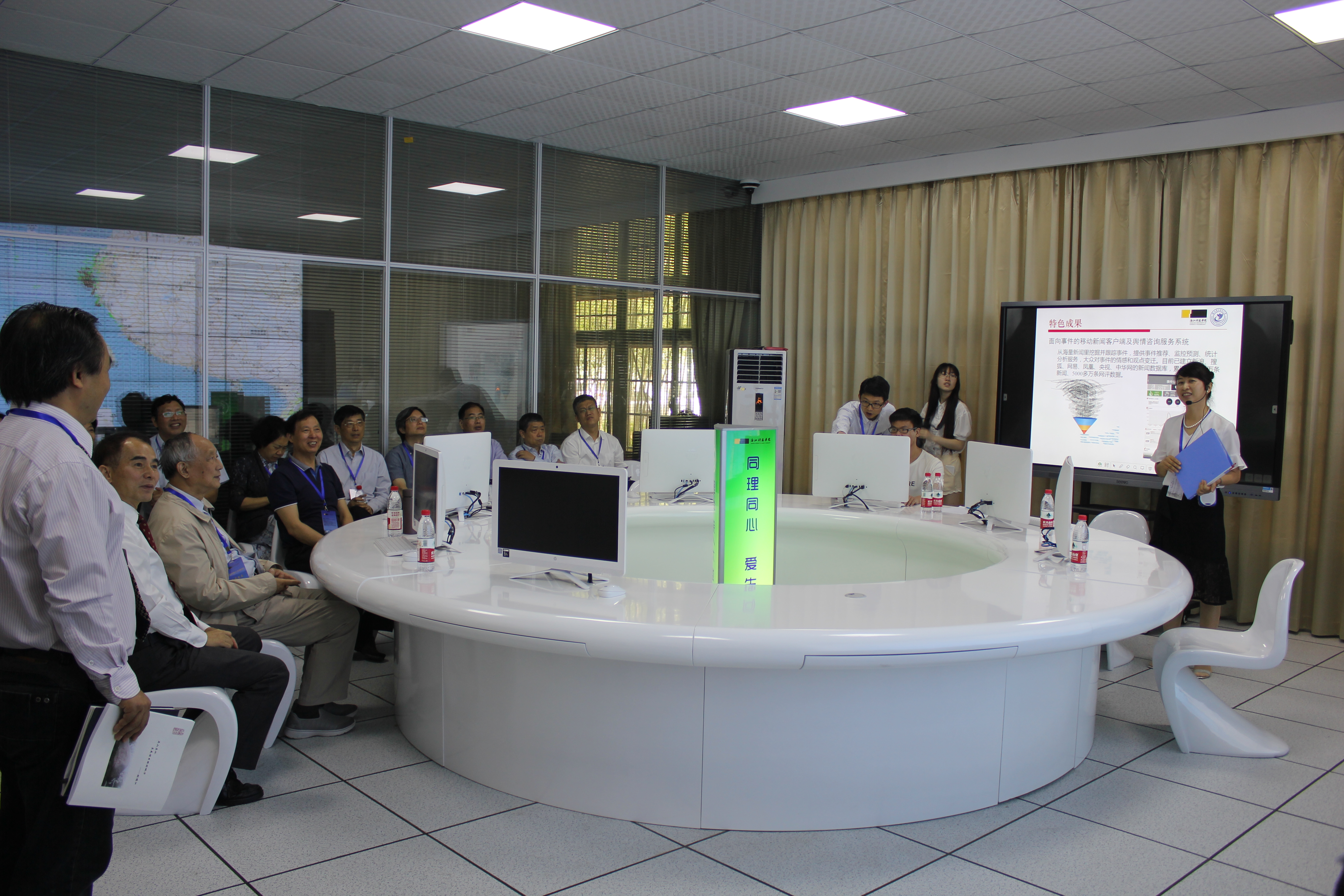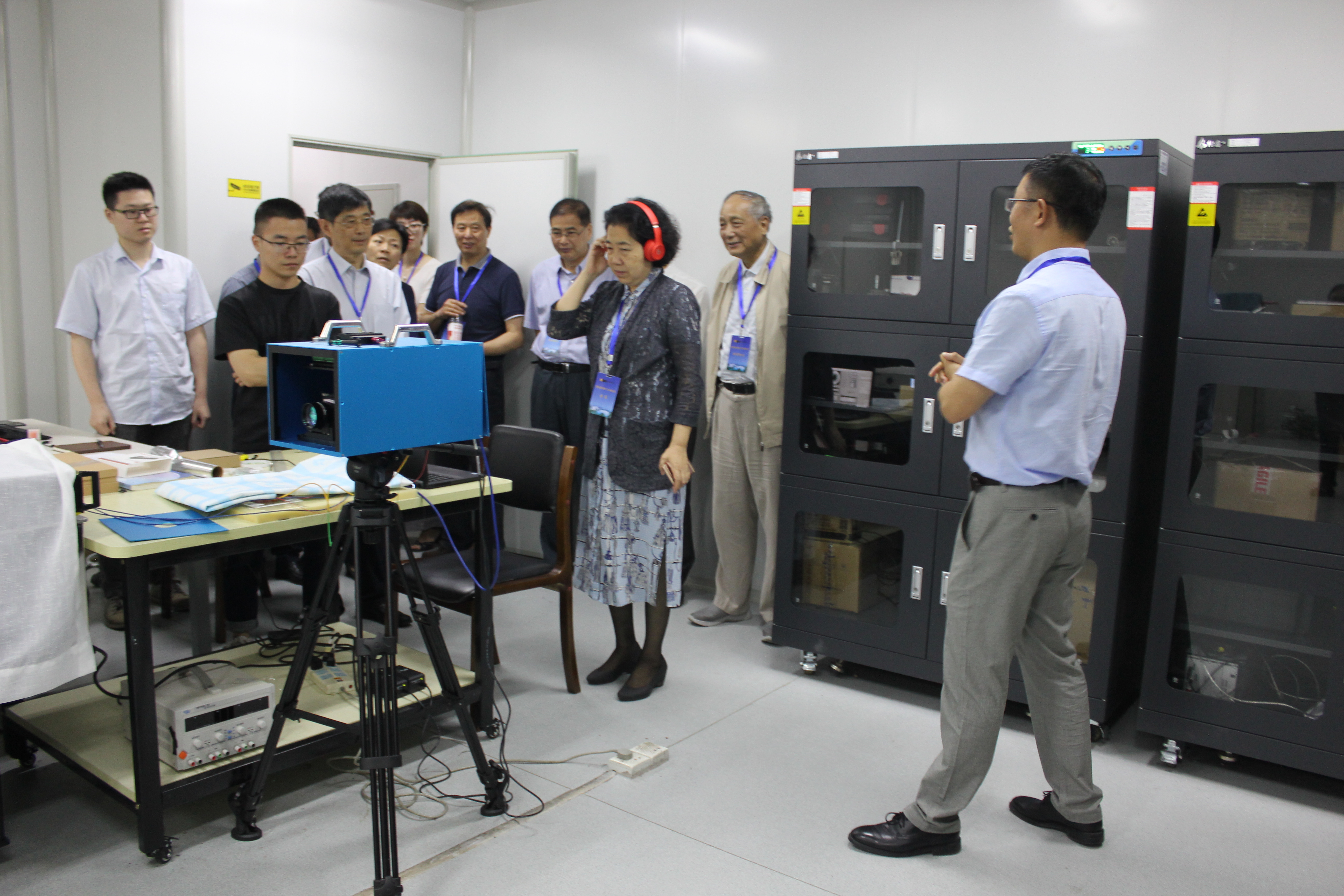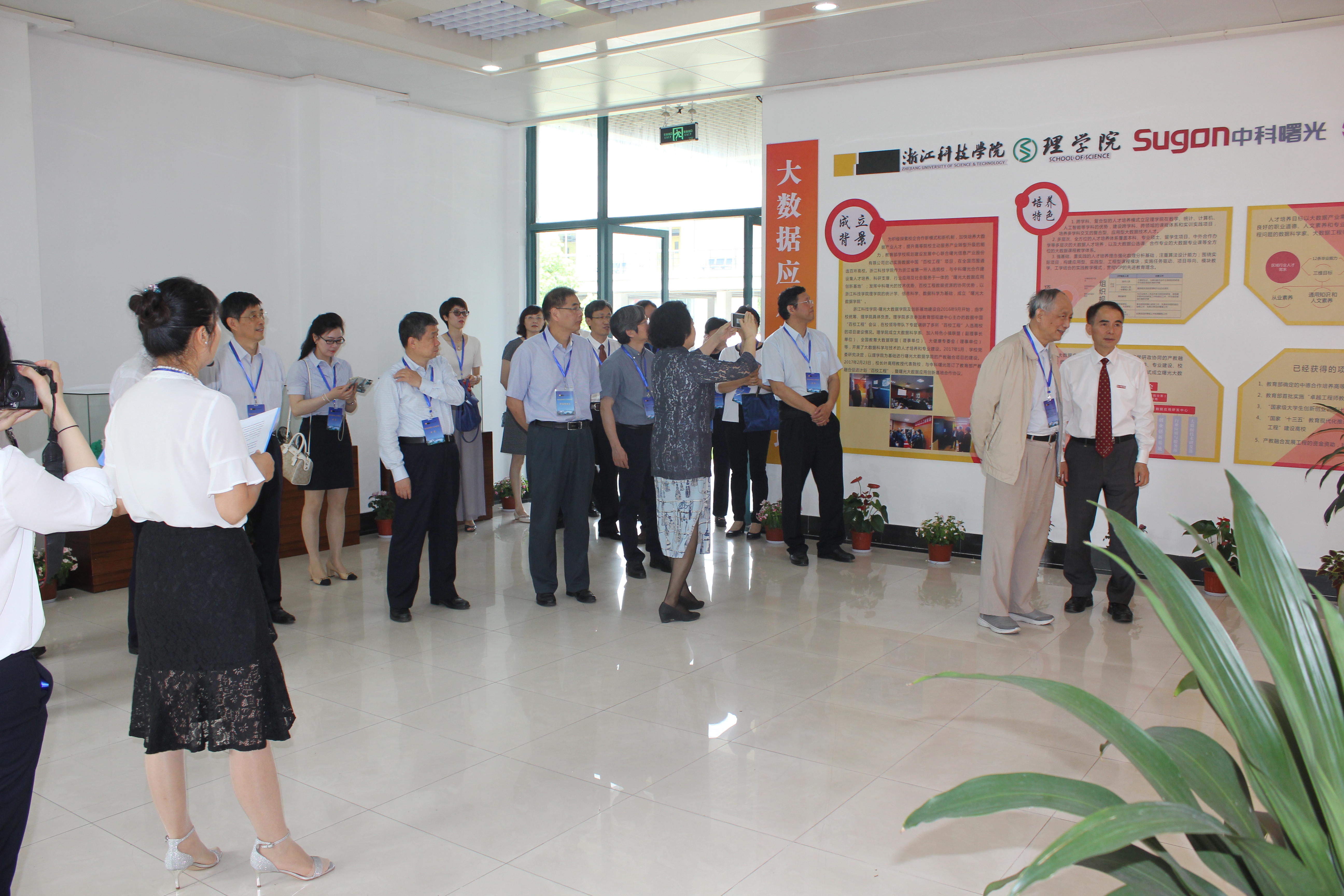 考察期间院长陶祥兴教授率院党政班子成员全程陪同,任东晓老师对曙光大数据创新基地的建设、功能以及大数据创新团队等做了详细的解说,专家组在基地大数据可视化展厅驻足良久,不断提出各种饶有兴趣的问题。潘卫清教授作为3D光学与深感实验室的解说员,详细的介绍了实验室的各种设备仪器以及在教学中的应用,并邀请专家体验BBIN
