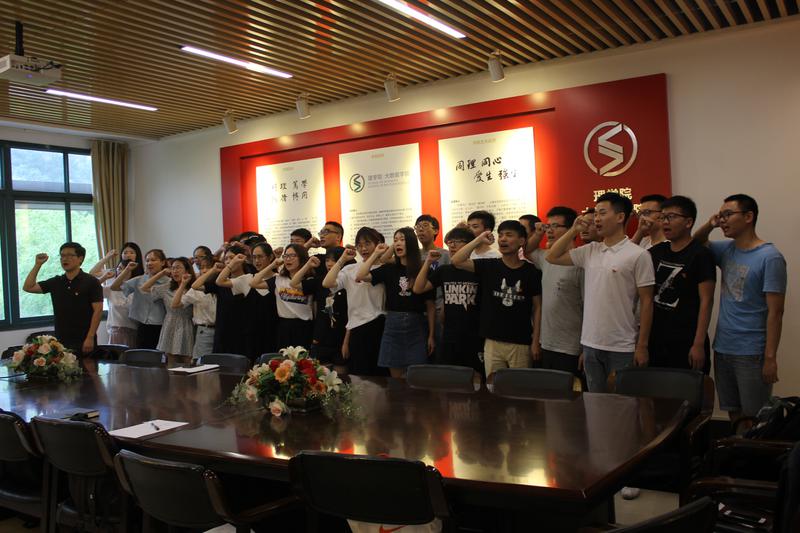 最后,在王宝明的领誓下,全体毕业生党员重温入党誓词,铿锵有力的宣誓声响彻会场,为2018届毕业生党员的“最后一次党课”画上圆满的句号。