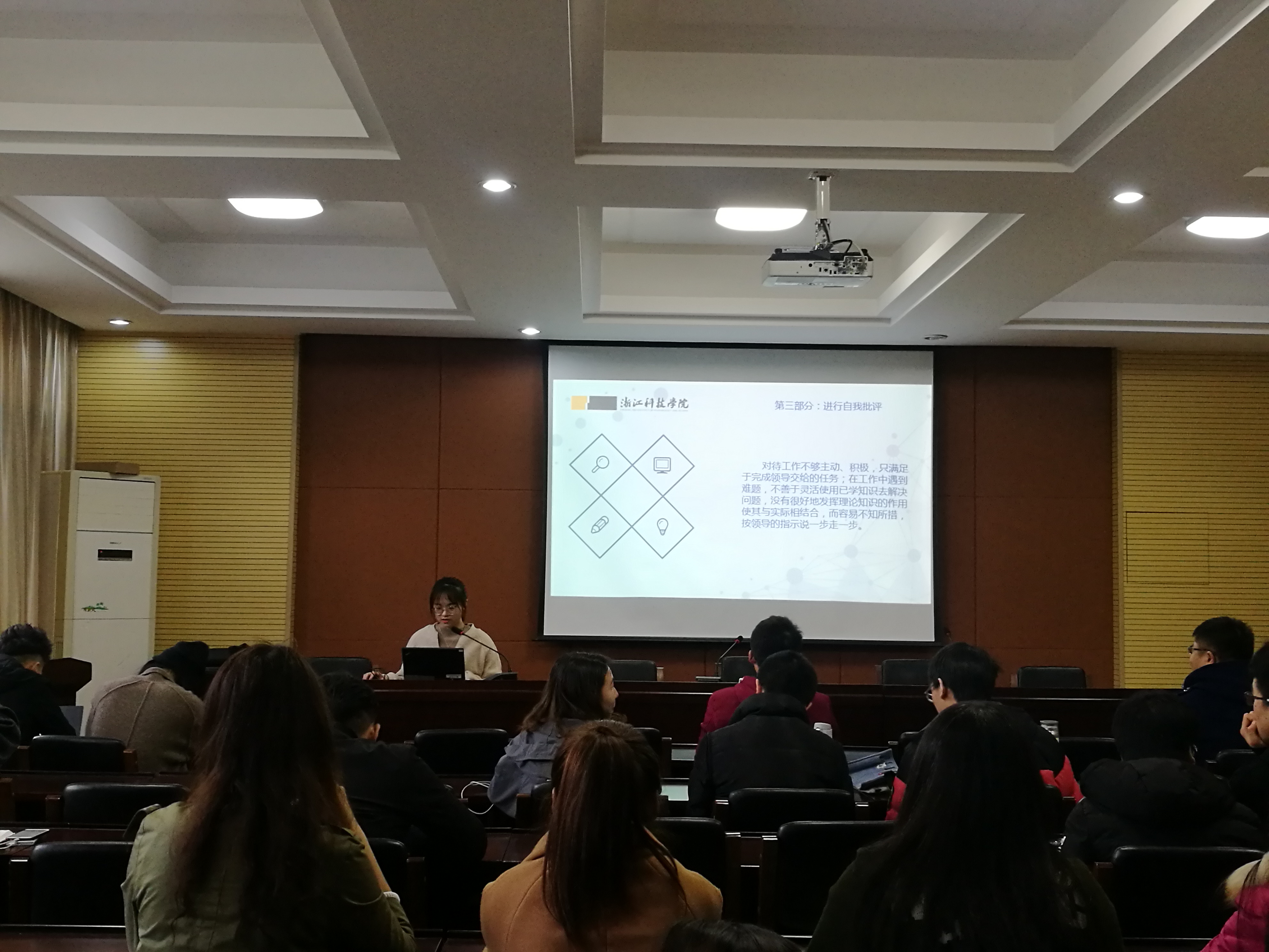 随后,第一学生党支部和第二学生党支部分两个会场分别开展民主评议党员工作。党员以ppt报告形式,结合个人工作学习情况晒成绩、比作为,查摆问题、分析原因,提出整改举措、亮出承诺,认真开展批评与自我批评。与会正式党员结合平时表现及现场汇报情况当场进行互评。汇报结束后,各支部分别对会议进行点评和总结,要求全体党员要进一步深入查摆问题、进一步细化整改举措,切实做到真评真改,以评促改。
