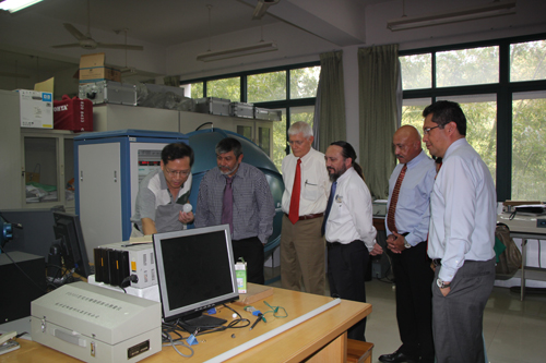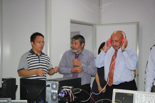 阮世平教授、职亚楠、沈艳婷等为客人进行了讲解和实验演示。国际处处长夏建中、留管中心副主任冯少中等陪同参加了接待。