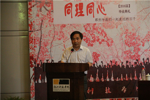 毕业典礼在庄重的国歌声中拉开帷幕。首先,陶祥兴院长上台致辞。陶院长祝贺毕业生们顺利完成学业,走向社会,他送给毕业生三句离别赠言,希望他们认真做人做事,积极求善求美,永葆理想勇气。这不仅是一位领导的关心,更是一位老师对同学的关怀。