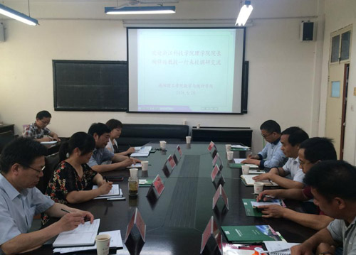 办学情况、学科建设经验、学生学风建设、大学生科技竞赛、大学生考研及就业情况、“两学一做”学习落实情况、党建工作等方面进行了深入的交流与探讨。调研组还专门就河南地区的金融数学与统计、信息与计算科学的招生情况和人才需求进行了调研。