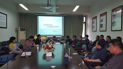 会上,院党委书记苗红亚首先发言。她阐明了支部建在学科上的重要意义,希望广大教师党员在学科建设中发挥出先锋模范作用,努力促进数学学科的跨越式发展。院长、院党委副书记陶祥兴教授专门做了“学科建设2.0——支部建在学科中”的重要报告。报告回顾了数学学科从十一五期间的重点学科,发展到十三五的一流学科的历程,提出了下阶段学科发展的责任与任务。陶院长特别提出了“点线面”的工作思路,从个人、团队到整个学科的发展规划作出了精辟的阐述。他希望年轻博士党员要以最大的热忱投入到学科建设中来,不但要形成团队,还要成为有行动力的战队。会议气氛热烈,与会教授、青年博士纷纷发表了自己的想法。
