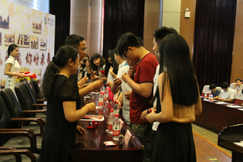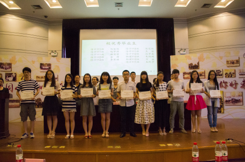 领导为2015届省、校优秀毕业生和考研出国留学学生及校友联络员颁发了荣誉证书、纪念品和聘书,还未毕业生代表佩戴了校训纪念章并赠送了BBIN