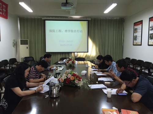 党政班子成员、系主任等办学骨干在闻理园A4-222召开主题为“强院工程,理学在行动”的专题会议,会议由院长陶祥兴主持。