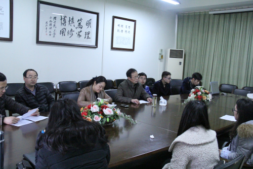 党总支副书记王杨、数学系主任朱婉珍、副主任章迪平、物理系教授王长荣及正在同济大学攻读博士学位的徐弼军老师应邀参加交流会,会议由王杨主持。