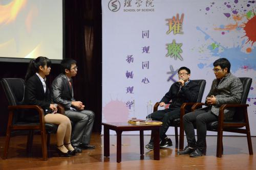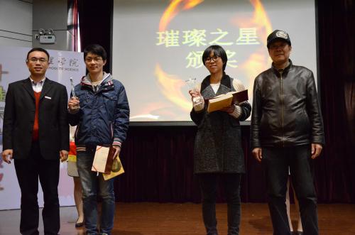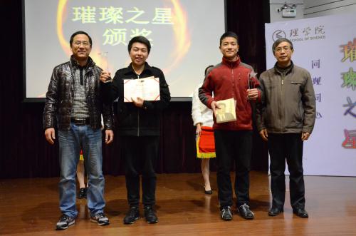会始终将教书育人放在首要位置,致力于培养厚基础、强应用、高素质,具有国际视野的优秀人才,不断给予理学学子众多政策支持和精神鼓励。 在现场响起的热烈掌声和欢呼声中,主持人上台宣读了2014年 “理学·璀璨之星”十人获奖名单:周婷婷、王凯宇、黄立媛、赵梦倩、张晟畅、陈冠维、张东,BBIN