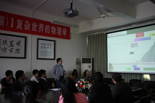 近日,北京师范大学郑志刚教授应邀来BBIN 作了“复杂世界的物理学”的学术报告。报告由应用物理系系主任潘卫清博士主持,BBIN 院长岑岗教授、院长助理骆均炎博士、物理系副主任王建中老师以及物理系教师和部分高年级学生参加了讲座。