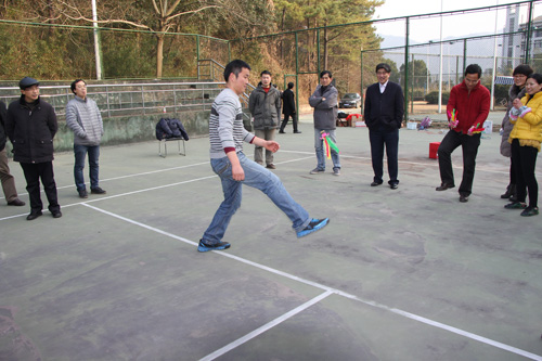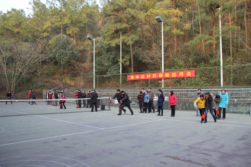 分工会在A4网球场举行了一场别开生面的“辞旧迎新”团拜会。全院60余名教职工热情高涨地参加了活动,校长叶高翔也莅临现场并致新春贺词。