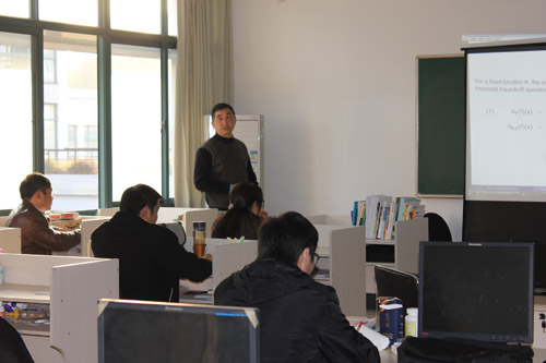 11月20日下午,美国威斯康辛大学密尔沃基分校范大山教授应邀作客和山数学论坛第55讲,做题为“分析中某些积分算子的讨论”的学术报告。报告由校学科带头人陶祥兴教授主持,数学与信息科学系部分教师及研究生聆听了报告。