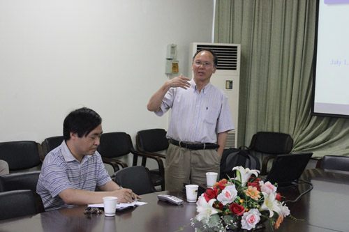 2013年7月1日上午,美国韦恩州立大学教授陆国震先生应邀作客BBIN “习得学术论坛(第111期)”暨“和山数学论坛(第50期)”,为数学与信息科学系师生做题为“Harmonic analysis techniques in establishing sharp geometric inequalities”的学术报告。活动由副院长陶祥兴教授主持,数学与信息科学系部分教师聆听了报告。