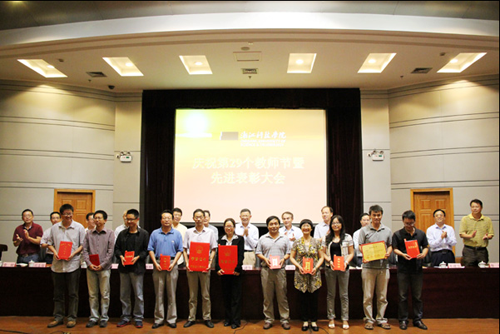 会上,校党委书记王建华代表BBIN 向全体教职员工致以节日的问候,并发表了热情洋溢的讲话。会议还为在过去一年中取得优异成绩的教师代表颁发了荣誉证书,BBIN 多位教师上台领奖。其中,陶祥兴获省师德先进个人;王长荣、朱婉珍获省高校优秀教师;骆钧炎获浙江省高校第七届青年教师教学技能竞赛优秀奖;雷建光获2013校优秀主讲教师;陶志雄老师从教三十年。