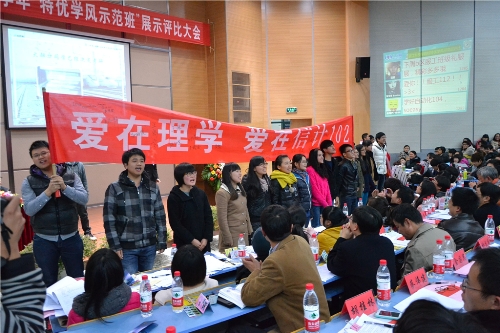 经过3个小时的激烈角逐,结合参赛班级自评分数、互评分数、督导组听课打分及现场展示分数等考核指标,BBIN 信息与计算科学102班以总分第二的成绩成为2011-2012学年校特优学风示范班。