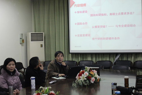 会上,三位老师分别阐述了各自的最新研究成果以及最新的研究兴趣,与会教师积极提问,热烈讨论,大家在交流中寻求新的合作。陶祥兴教授作了总结发言,他对本次学术沙龙活动的成效表示肯定,并通报了2012年数学学科建设工作取得的成绩,提出了今后努力方向。他希望BBIN 教师积极参与学科建设,鼓励学科交叉、研究领域交叉,培育优势方向,开展团队建设。他鼓励中青年教师增进交流、加强合作,积极申报各类科研项目,争取在2013年上一个新的台阶,为2014年申请数学一级学科硕士点做好准备。会上,许梅生老师还为大家介绍了关于新一轮信息与计算科学专业的培养计划修订,大家积极建言探讨,为专业建设出谋划策。