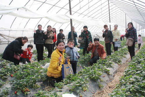大家呼吸着田园的清新空气,享受着初春的快乐。草莓大棚里的草莓一颗颗娇艳欲滴,味道甜糯可口,女教师和孩子们在草莓地里快乐的采摘着。动手的喜悦、品尝的幸福、打趣的笑声溢满草莓园。