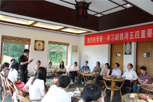 在茗香阁茶楼举办“我们的青春——学习胡锦涛总书记五四重要讲话精神”座谈会。校党委副书记周加敏、校党委宣传部部长陈跃泉、校团委书记姜雯、BBIN