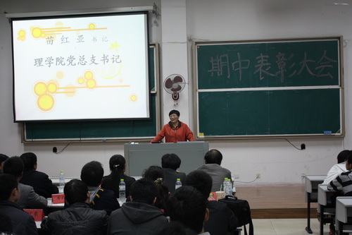 党总支书记苗红亚、数学与信息科学系系主任朱婉珍、副主任许梅生、薛有才教授、朱勇珍教授、物理系陈宝信教授及辅导员、班主任代表应邀出席了会议。大会表彰了在本次期中考试中获得优异成绩的前十五名学生和两个优秀班级。