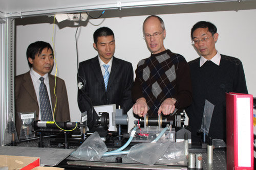 情况与办学特点。交流小组在德方教授陪同下,认真参观了各位教授的工作室和实验室,对德方的实验工作环境,特别是对激光工程方向的科研实验团队协作留下了深刻的印象。双方还就加大科研合作,“2+3”项目的进一步深化与拓展,以及教师与学生的互动交流等问题进行了深入的研究与探讨,在很多问题上取得了共识和一致意见。