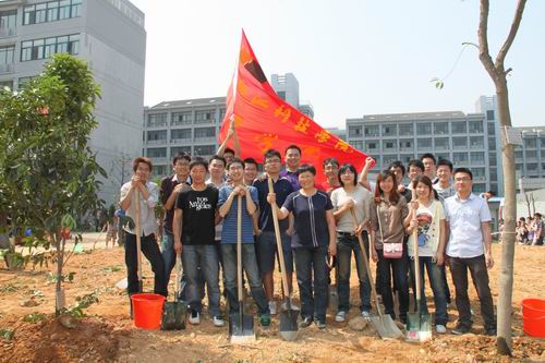 党总支书记苗红亚和就业辅导员与毕业生代表一起在习得园北侧栽下了香樟树和桂花树,以此表达2011届全体毕业生对母校的感激和无限留恋之情,纪念大学四年的难忘时光。