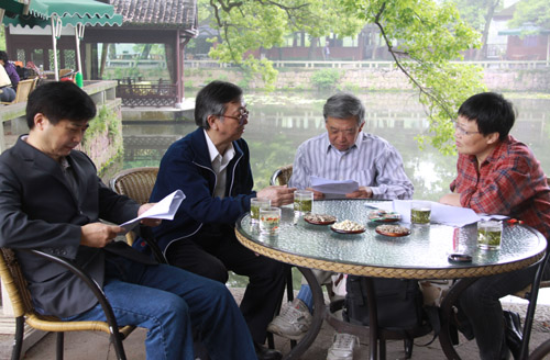 邀请狄福明、顾玉林、姚桂瑞三位退休老同志及校组织部部长李明在竹素园茶室进行座谈,就BBIN
