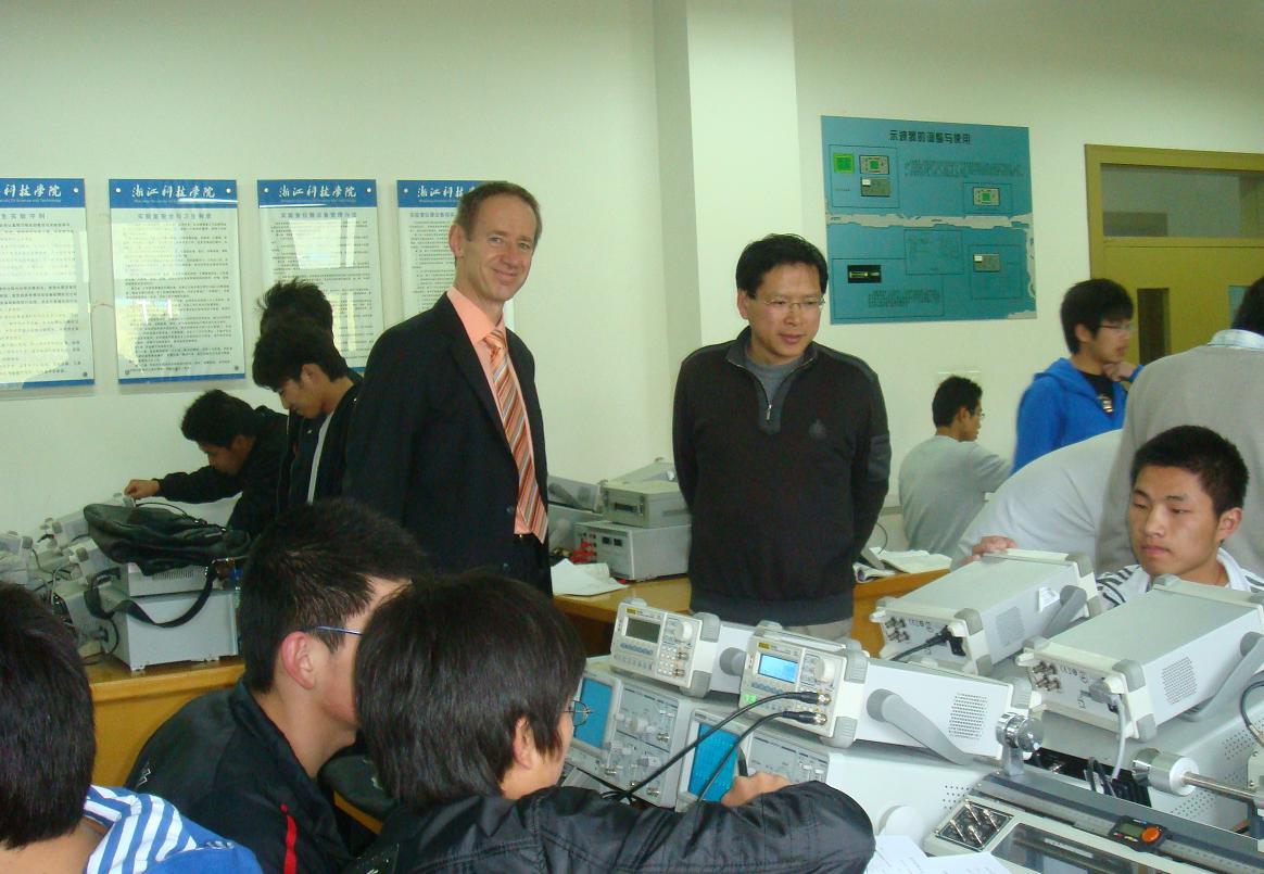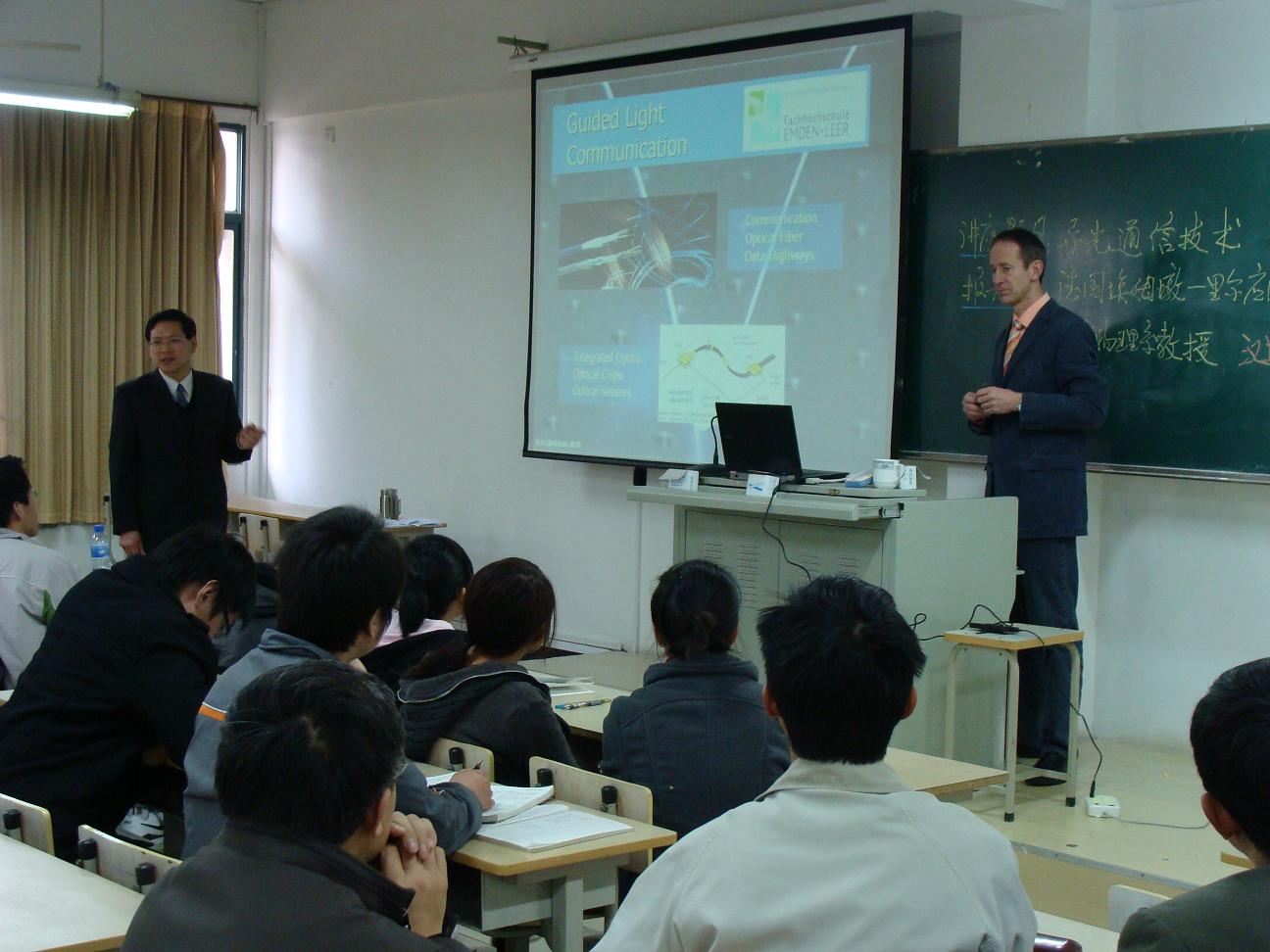 的工作访问,于3月31日离杭。Brückner教授在访问期间与副院长岑岗教授、阮世平教授就进一步合作进行了会谈;为08级应用物理国际班同学做了“应用物理基础”的系列讲座;参观了BBIN