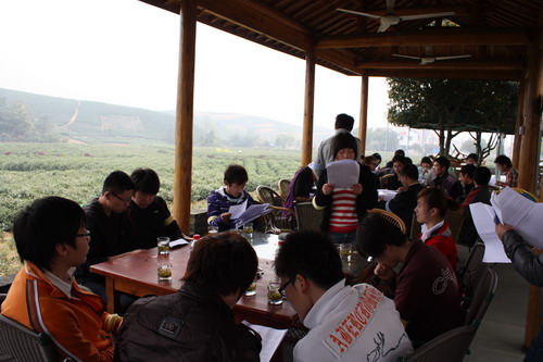 活动期间,同学们还分组开展了拔河、跳绳、大脚板等趣味活动,并走进农家,了解采茶、制茶过程,参观了龙坞社会主义新农村建设。