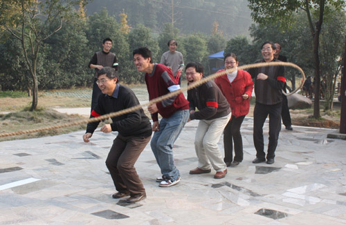 党的建设的意见”的有关情况,并布置了学习任务。她要求各支部要组织党员认真学习党的十七届四中全会公报和“中共中央关于加强和改进新形势下党的建设若干重大问题的决定”。每位党员都要加强党的理论学习,注重提高自身素质,充分发挥党员的先锋模范带头作用。随后,大家分四组开展了拔河、踢毽子、跳绳、两人三腿接力跑等丰富多彩的娱乐竞赛活动。