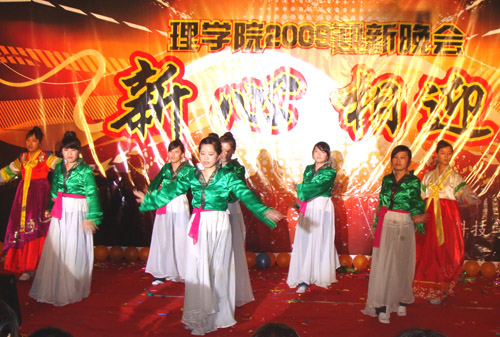 晚会在大一女生集体舞蹈“Girl’s show time”中开场,整台节目精彩纷呈,高潮迭起。欢快的旋律,优美的歌声,风趣的小品,让人沉醉其中。信息与计算科学系申国伦老师与信计082班邰振江同学表演的相声让我们领略到了BBIN