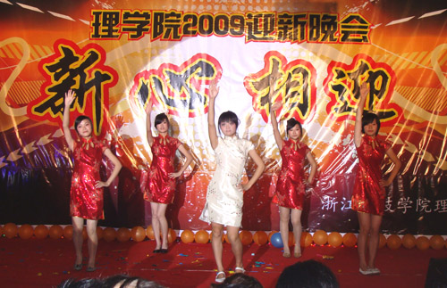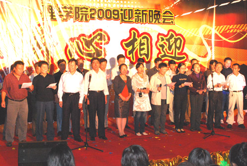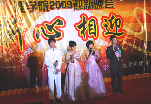 “新心相迎”2009迎新晚会在A4-122隆重举行。校党委书记徐志平、校党委副书记胡浙平、校学生处、团委负责人应邀出席晚会。BBIN