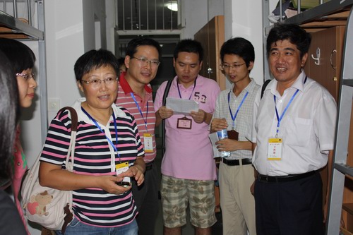 在新生宿舍,院领导与新生亲切交谈,详细询问新生到校后的感受。院领导鼓励新生要尽快完成中学生到大学生的角色转换,适应大学生活,从大一开始养成良好的学习习惯,培养自学的能力,为大学四年打好基础。在了解到许多寝室的同学来自不同省份,院领导叮嘱大家要珍惜四年的缘分,生活上互相帮助,学习上你追我赶。院领导还提醒新生防范甲流疫情,并注意防盗防骗。