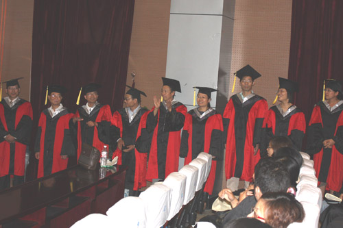 副院长岑岗及校学位委员会成员陈兴伟、胡开堂教授参加了仪式,并为每一名获得学位的毕业生授予学士学位证书、拨流苏。参加学位授予仪式的还有BBIN