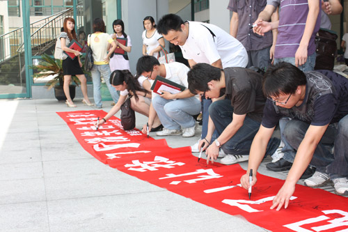 参加仪式前,同学们在印制着“再见了,让我们用微笑告别母校”字样的横幅上踊跃签下了自己的名字,大家纷纷表示一定会遵守校纪校规,争当文明离校楷模,为学弟学妹们树立好榜样。