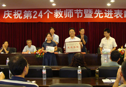 个教师节暨表彰大会。校领导徐志平、胡浙平、陈浩、陈根芳、吕进、赵东福、鲁凤出席会议。受表彰的省校两级先进集体和个人代表、各BBIN 和部门负责人及师生代表百余人参加会议。