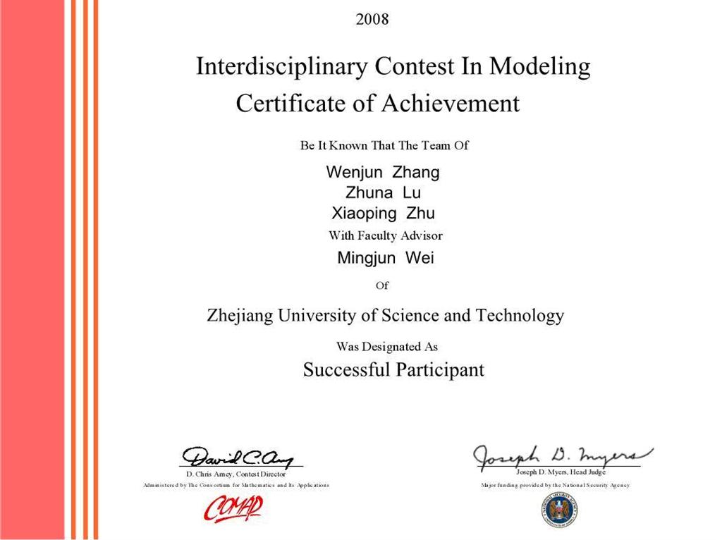 美国国际大学生数学建模竞赛Successful Participant(成功参赛奖)