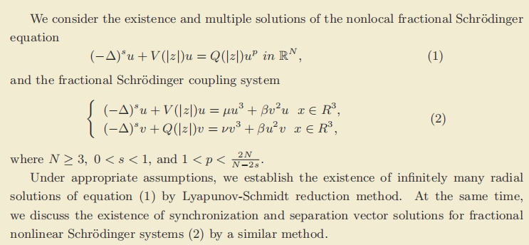 一、报告题目: Infinitely many positive solutions for fractional Schr¨odinger equation(system)