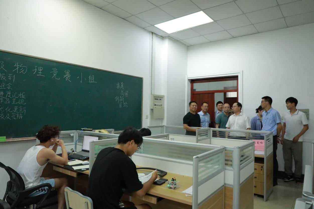 慰问组来到物理科技创新基地,校领导与各位老师、同学亲切交谈,送上慰问物品,并鼓励大家攻坚克难、勇攀高峰。师生们深受鼓舞,表示将全力以赴,争取在竞赛中取得优异成绩,为校争光。